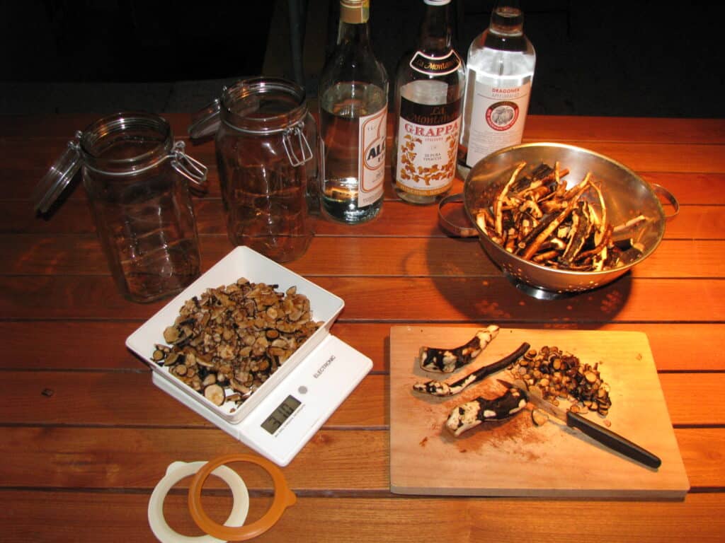 Je nach Droge werden Kraut, Wurzeln, Rinde oder auch nur die Blütenblätter verwendet. Kraut wird vor dem Einlegen grob zerschnitten und ein bisschen angetrocknet, Wurzeln oder Rinde fein zerteilt, im Idealfall geraffelt oder oder in einem Blender zerkleinert. Je feiner die Drogen sind, desto schneller und besser werden sie ausgezogen.