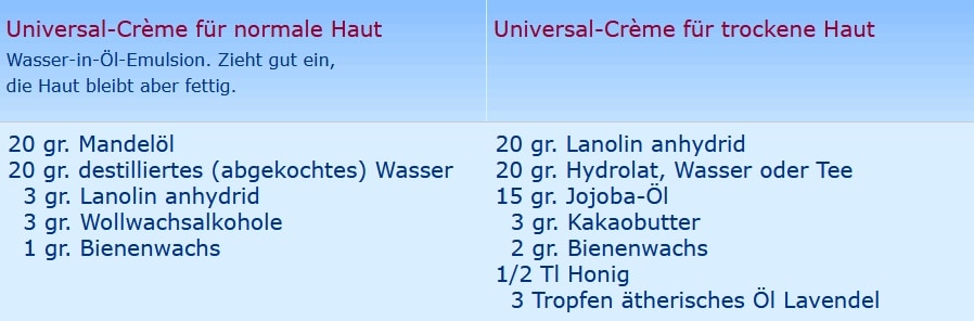 Eine Crème besteht grundsätzlich aus einem wässerigen (Wasser, wässerige und alkoholische Auszüge) und einem öligen Anteil (Öl, Fett, Wachs und andere Konsistenzgeber). Wenn Wasser und Öl mit Hilfe eines Emulgators zusammengeführt werden, entsteht eine Crème. Der Emulgator wird benötigt, um zu verhindern, dass sich Wasser und Öl nach dem Verrühren wieder trennen. In der Naturkosmetik werden als Emulgatoren sehr oft Lanolin (Wollfett) oder Wollwachsalkohole (WWA) verwendet. WWA ist nur die emulgierende Komponente des Wollfetts.