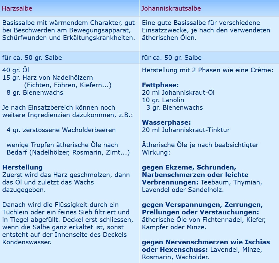 Unsere Grosseltern und ihre Ärzte kannten als äusserliche Anwendung bei allerlei Beschwerden vor allem die Salbe auf der Basis von tierischem Fett unter Zugabe von Heilpflanzenauszügen.